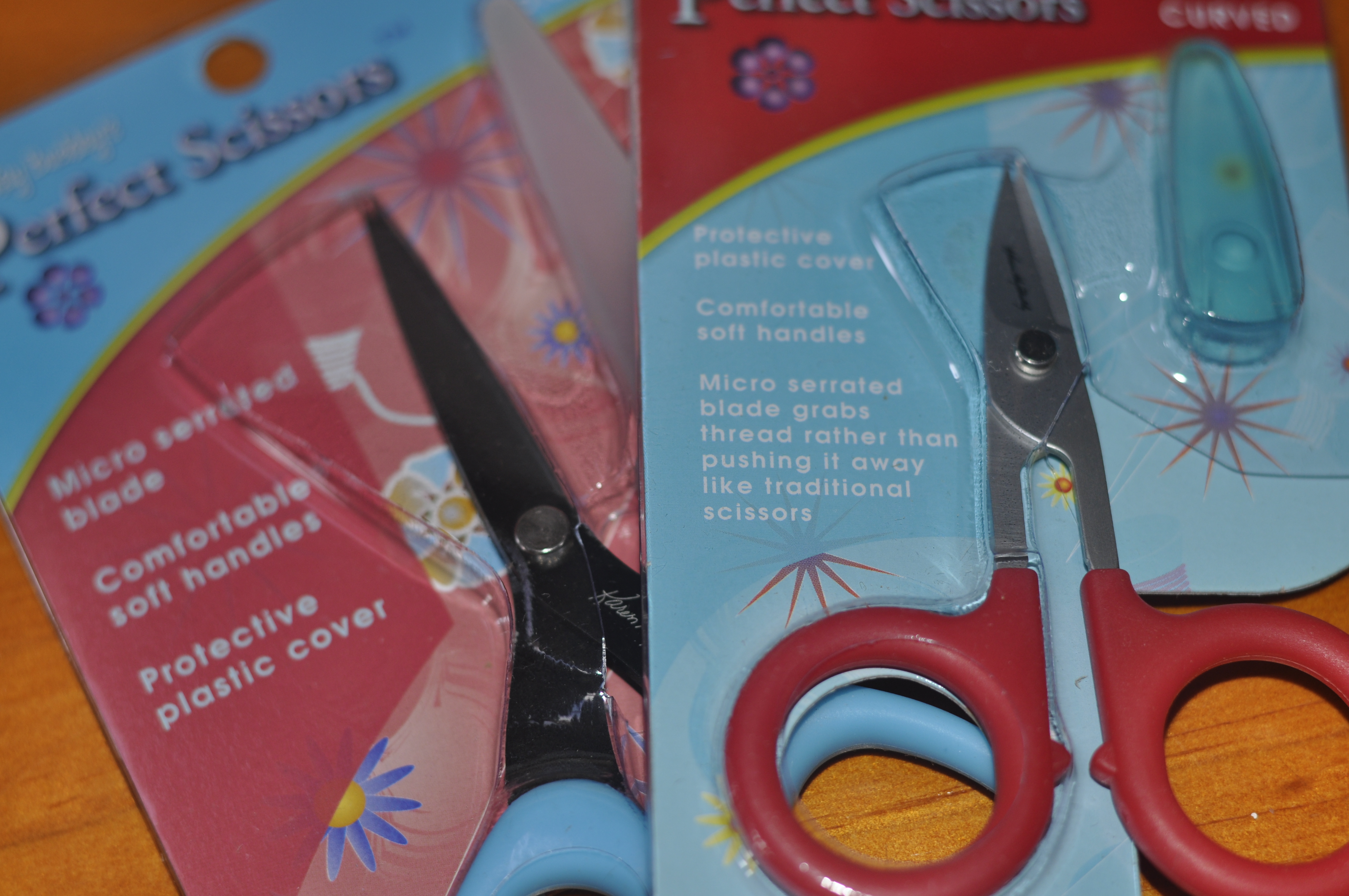 I already have the large and small scissors and they are wonderful. The serrated edge does stop the fabric fraying out. Great for applique.